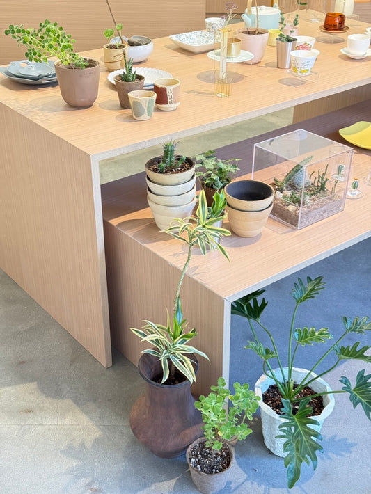Each plant in this collection is uniquely dressed-up. We not only adore the distinctive beauty of every single plant but also cherish the plant's living conditions. By mindfully choosing a suitable planter and the necessary accessories, every plant lives in its ultimate growth and comfort.