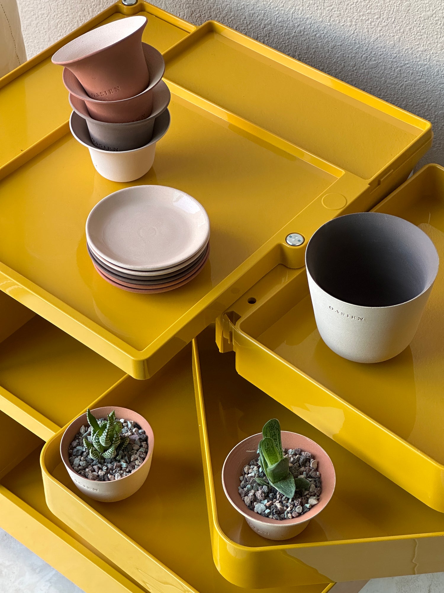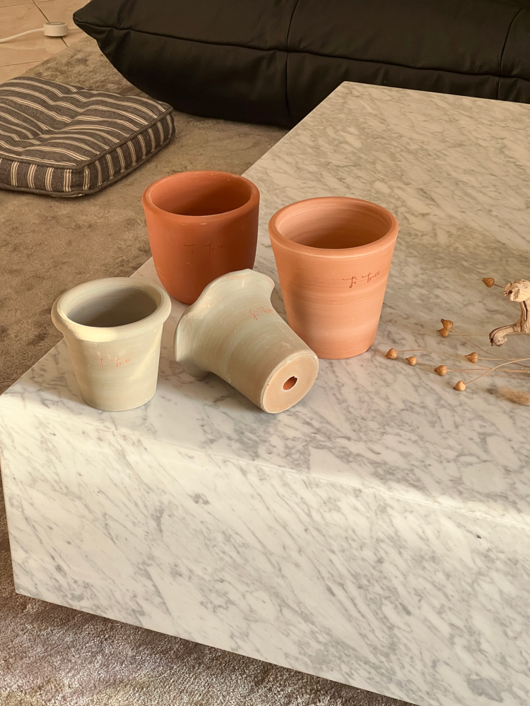 In Oasien, all clay pots use different natural glazes or dyes to create color differentiations rather than added colors. The unique texture, color, and plasticity characteristics of the earthenware are born from the natural feeling of soil.