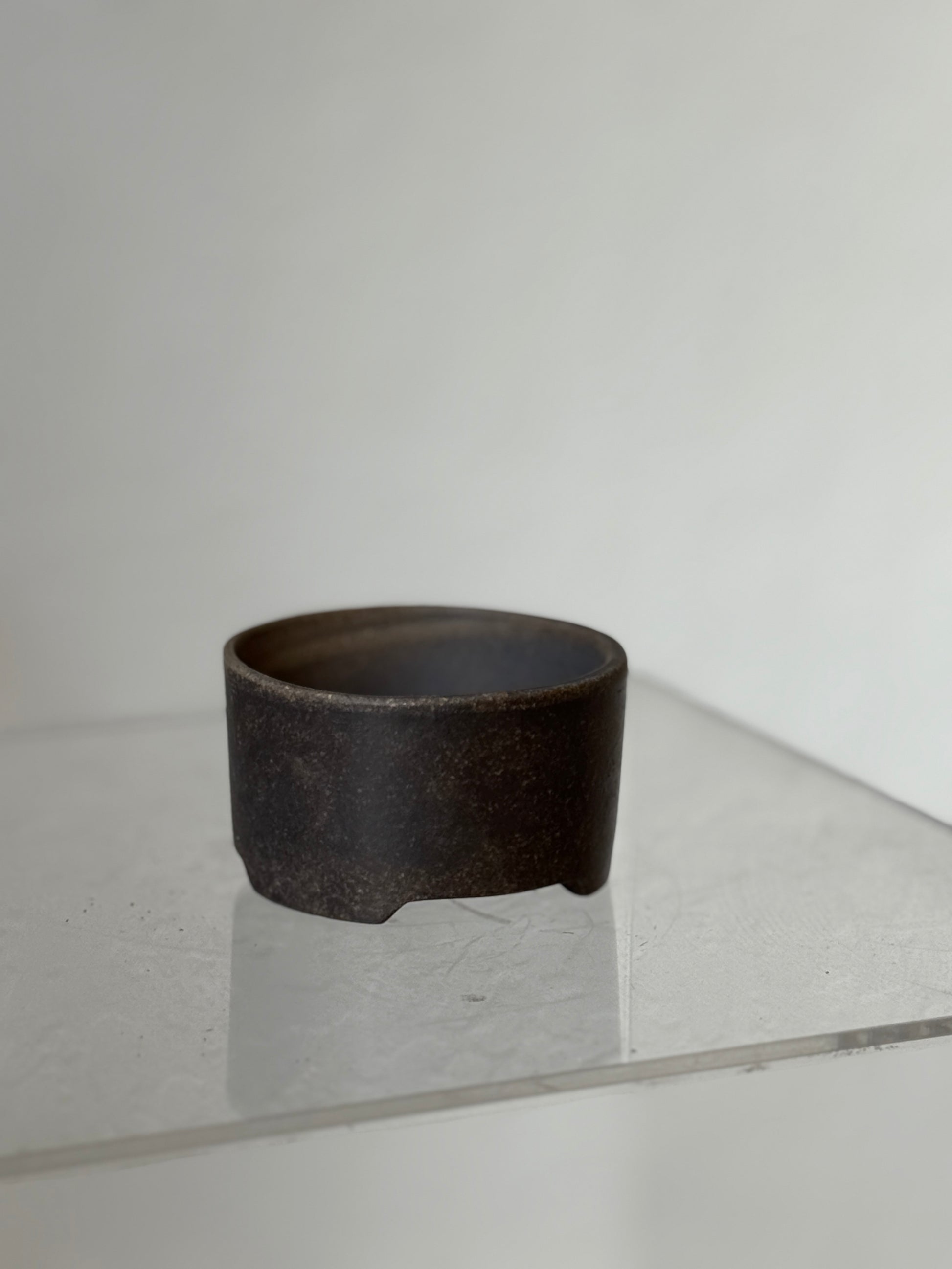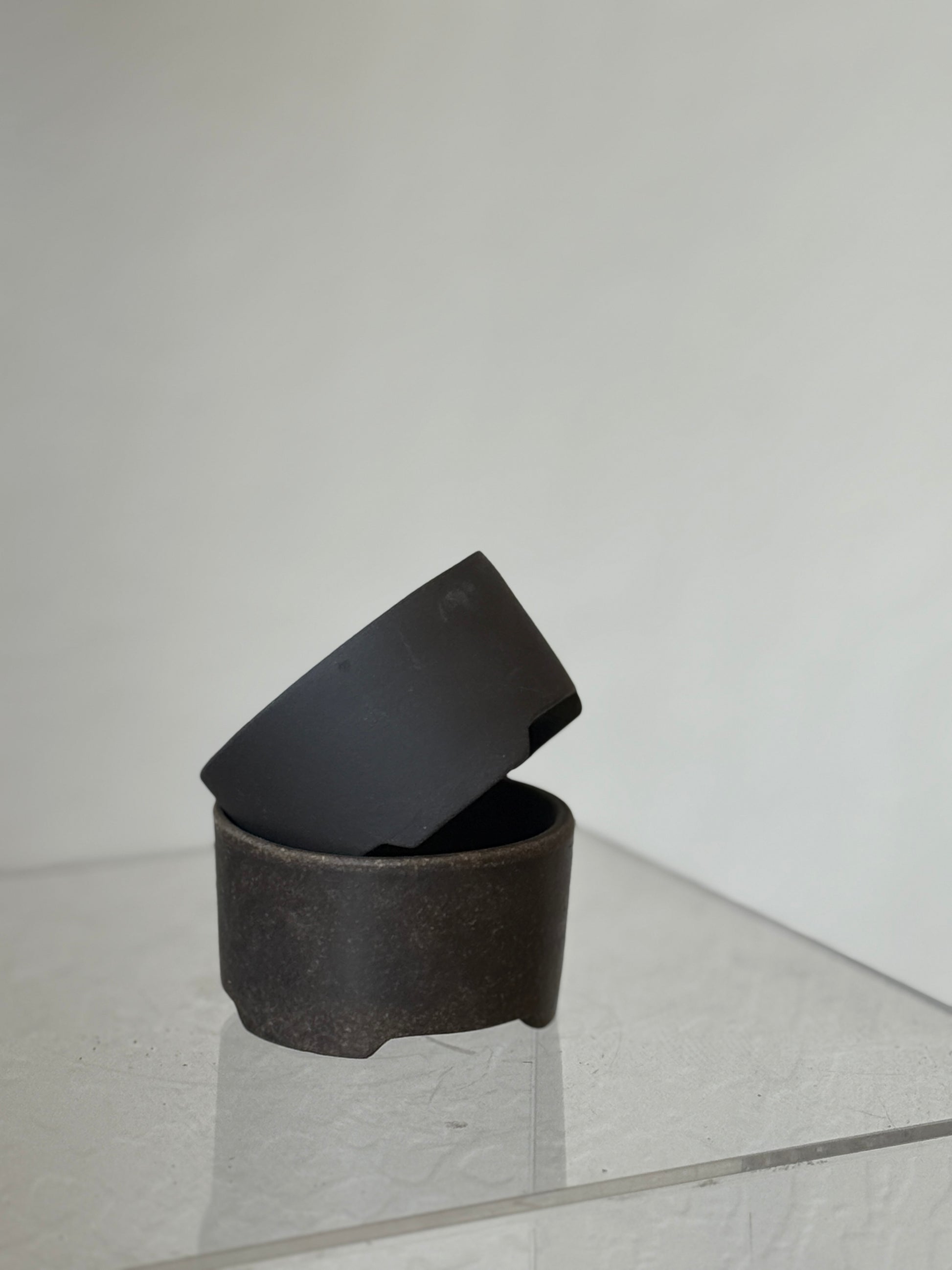 These minimalist Zisha clay (紫砂) planters are designed with a clean, cylindrical form elevated slightly on a three-footed base. The low, wide profile makes them ideal for succulents, small bonsai, or tabletop arrangements.
